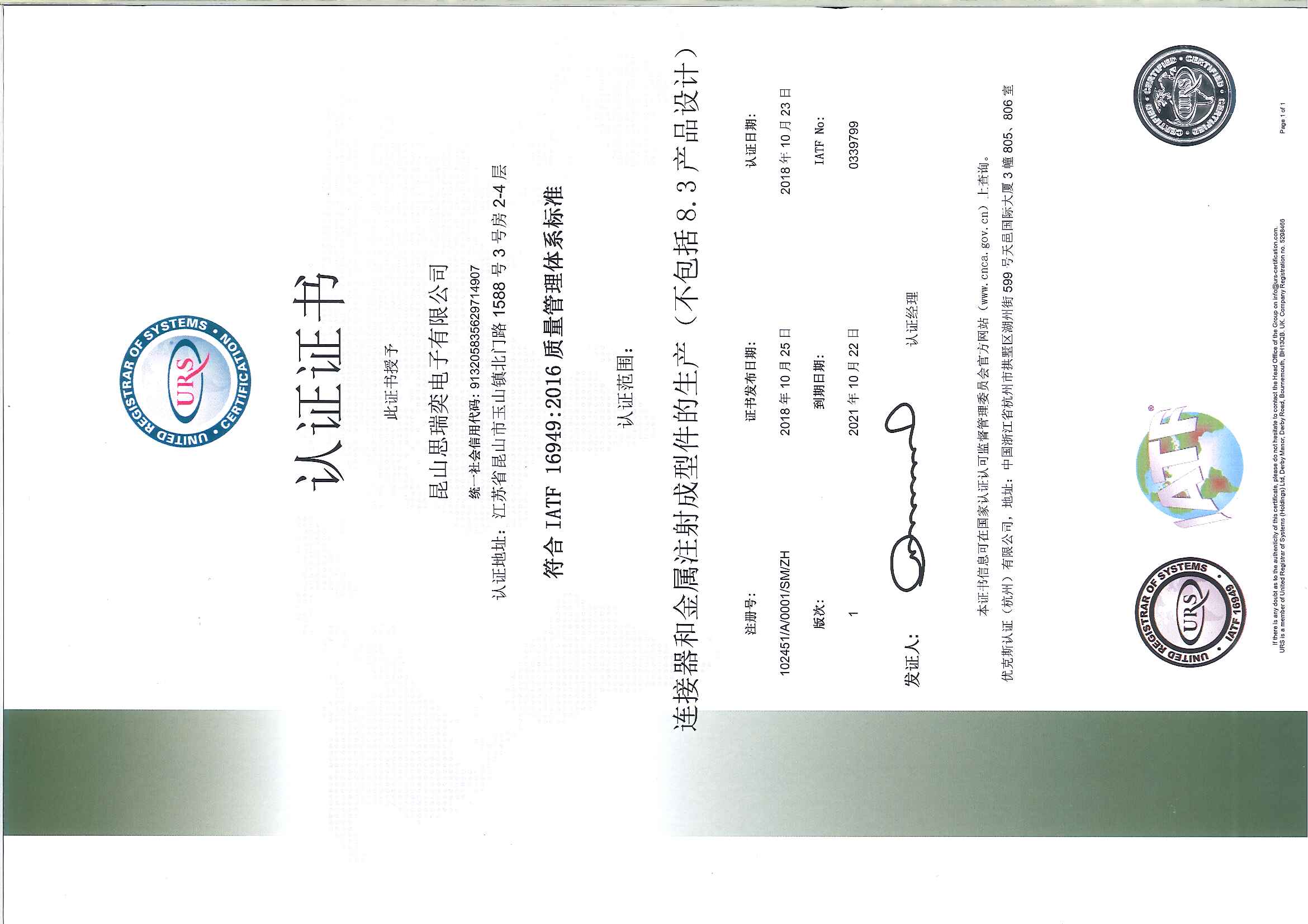 思瑞奕電子有限公司成立于2010年10月,注冊(cè)資金7500萬人民幣,總部位于江蘇省昆山市,在重慶、江蘇東臺(tái)、江蘇太倉設(shè)有分廠,公司于2011年通過ISO9001/ISO14001認(rèn)證,2013年通過高新技術(shù)企業(yè)和TS16949(IATF)體系認(rèn)定,2016年先后通過知識(shí)產(chǎn)權(quán)管理體系認(rèn)證、安全生產(chǎn)標(biāo)準(zhǔn)化認(rèn)證,2017年獲頒江蘇省民營科技企業(yè)、2018年先后獲得蘇州市人民政府認(rèn)定企業(yè)技術(shù)中心、科技部認(rèn)定中小型科技企業(yè)、江蘇省最具成長性高科技企業(yè)、2020年獲得江蘇省人民政府認(rèn)定企業(yè)技術(shù)中心、2021年獲得蘇州市瞪羚計(jì)劃入庫企業(yè)、江蘇省省級(jí)工程技術(shù)研究中心、江蘇省專精特新中小企業(yè)等榮譽(yù)稱號(hào)......